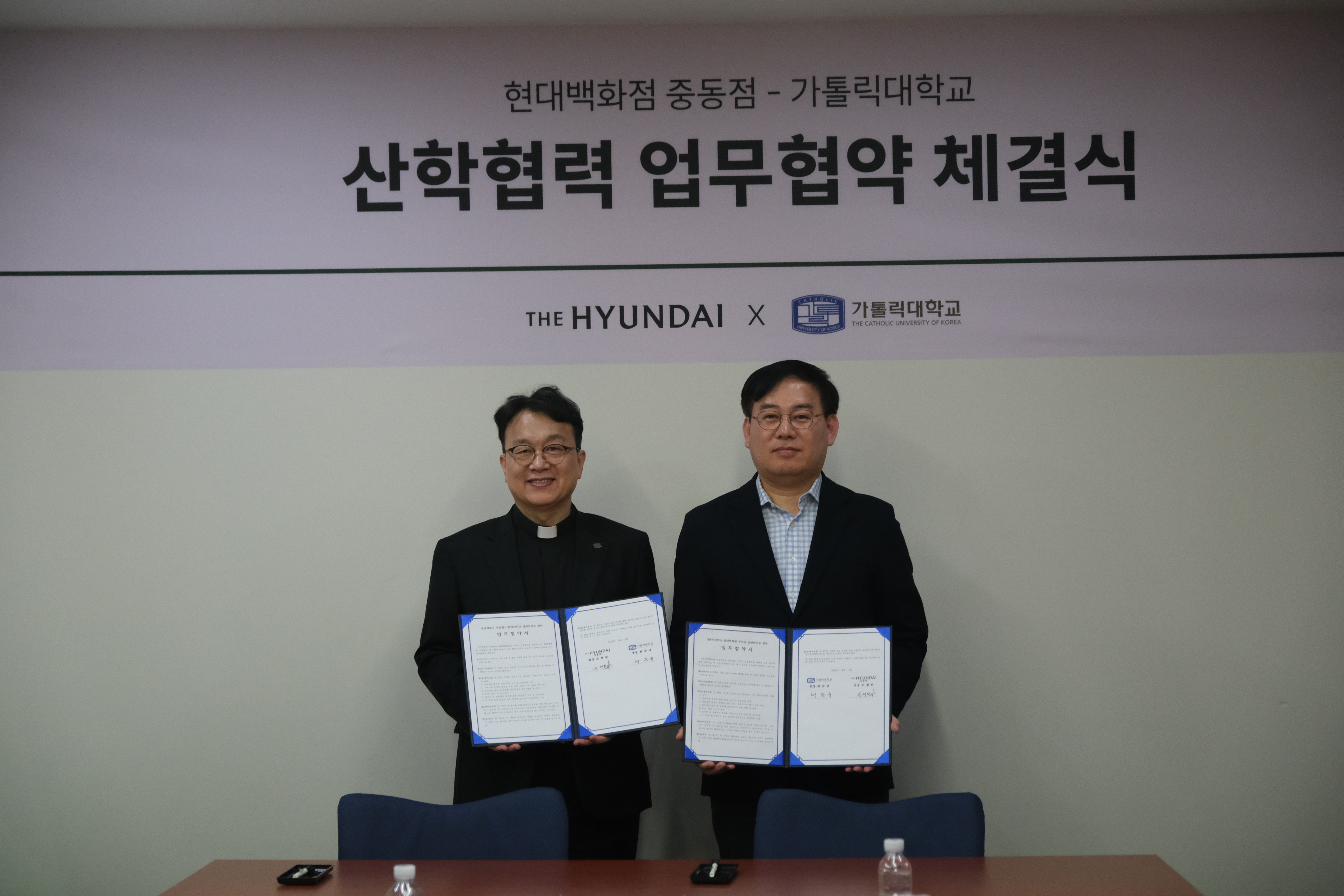 가톨릭대는 지난 3일(금) 현대백화점 중동점 9층 회의실에서 현대백화점 중동점과 산학협력 업무협약을 체결했다. 이날 협약식에는 가톨릭대 최준규 총장, 이상균 교학부총장, 의류학과 이혜원 학과장 외 교수진 및 허효미 RISE사업운영팀장과 현대백화점 중동점 조재현 지점장, 판매기획팀·여성판매팀 실무진 등 양측 주요 관계자들이 참석해 협력 의지를 다졌다.